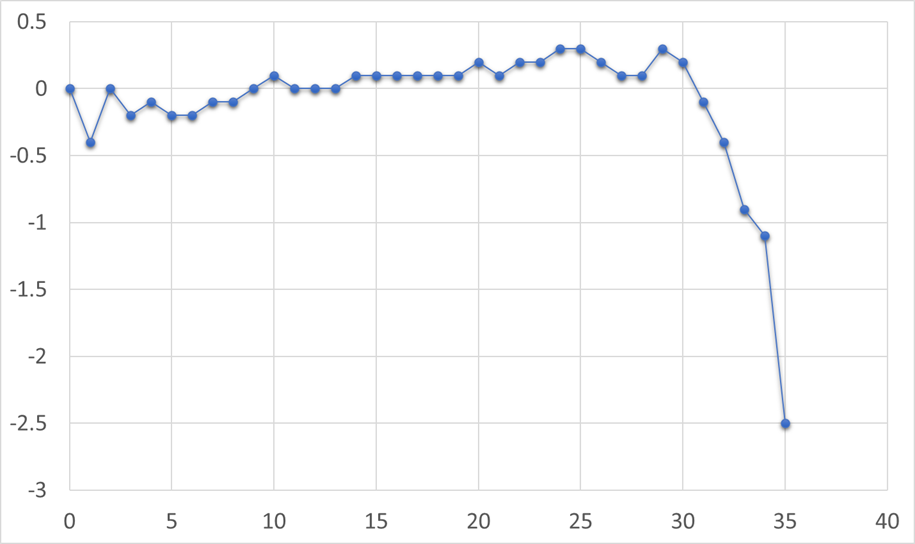 図3を見ても、全体的に負バイアスですが、暑さ指数が高いほどばらつきが小さく、ME程度(-0.5度)あたりに収束しているように見えます。