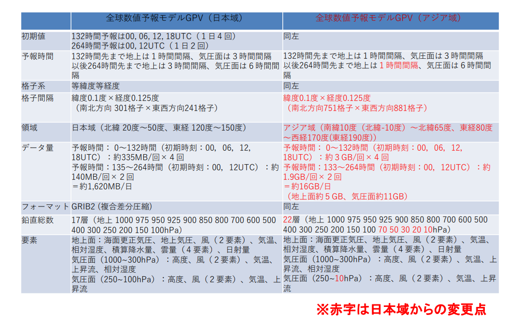 仕様の変更は前述の通りですが、アジア域データと日本域データの予報値が同じであるかを確認しておく方が、安心して新データを検討できるかと思います。